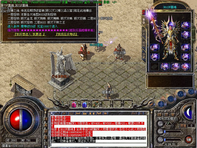 〖公告〗本服极品好暴。武器好升。武器最高可以加13点。沙武器店升上6点。在元宝商城购买攻击魔法道士良品宝石直接永久加7点。