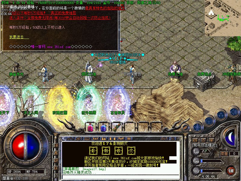 〖公告〗占沙奖励:新区2天攻沙,新区攻沙奖励1000000元宝,老区天天攻沙,奖励400000元宝,功沙奖励自行到沙巴克皇宫领取!!