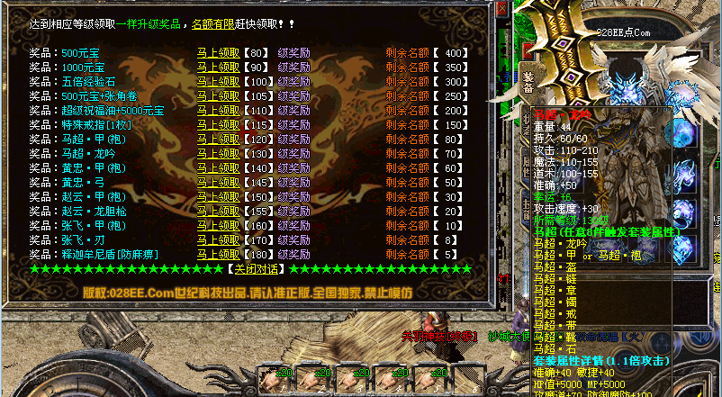【介绍】装备层次:狂雷→火龙→荣耀→虎威→董卓→传奇→张角→吕布→貂蝉→马超→ 黄忠→赵云→张飞→关羽(你懂的)