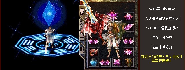 ①新手进服点NPC进入新人泡点,不到10分钟可以泡到52 及,系统送你一套初级装备,可以去闯 砝码大陆了!回土城先去尸王殿打本开天斩(书都是免费的)其他职业亦然!