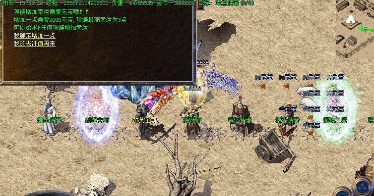 ⒊全身幸运加9!武器幸运加7,项链幸运加2点,这样全身幸运加9点可以触发人物最嘉状态,攻魔道大大提升!!!杀人必备哦!!!