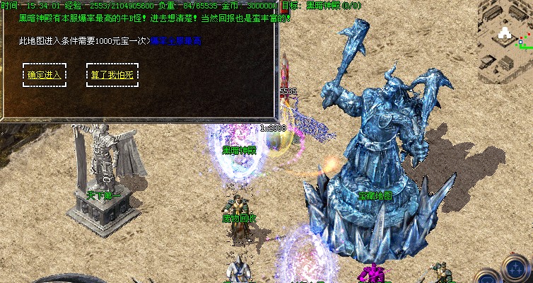 ④等你有了足够的实力就可以去挑战黑暗地图了!里面BOSS超级强悍!BOSS爆全服所有装备,道具,解封材料!此地图全服爆率最高!