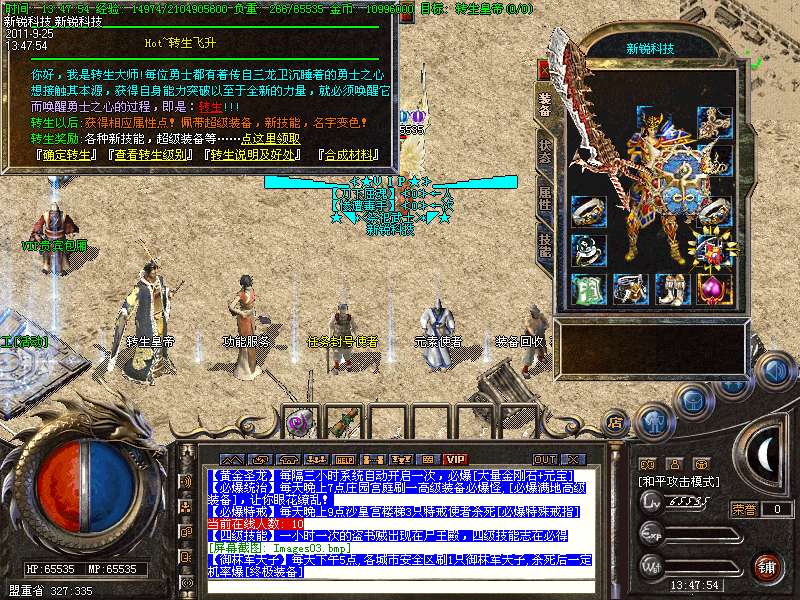 【更新】更新转生系统,1-15转,转生后每转都可以获得相应属性点,每转可获得强悍技能.详情请看转生皇帝!
