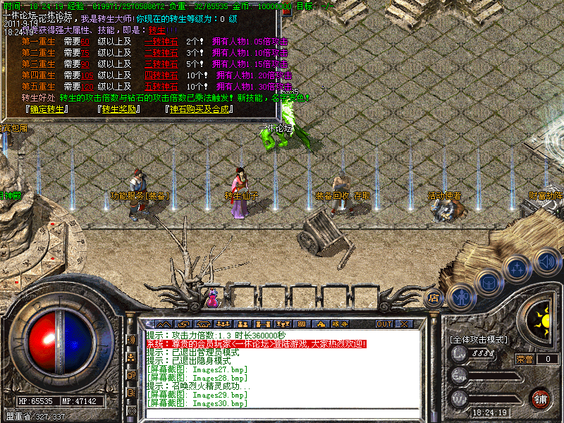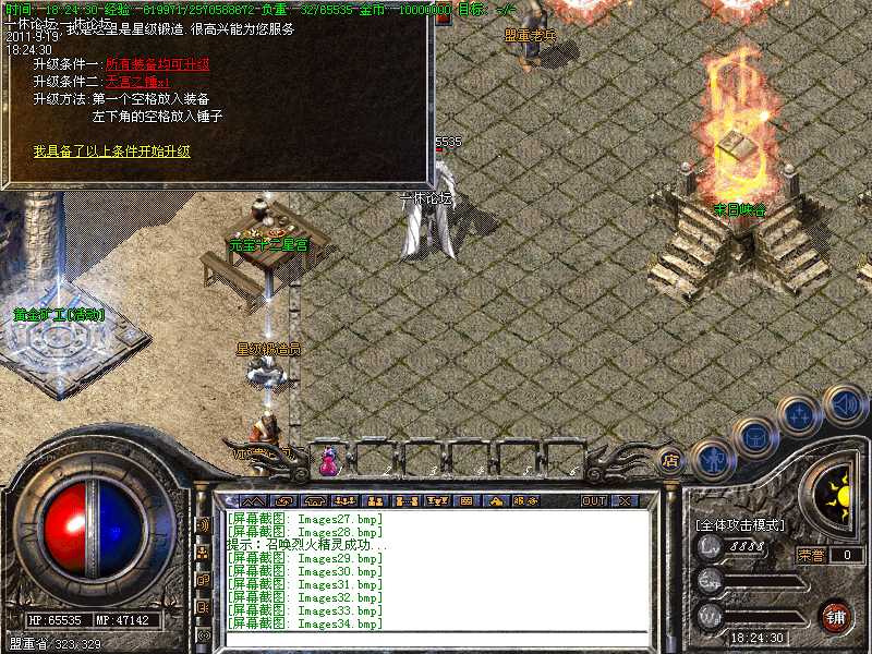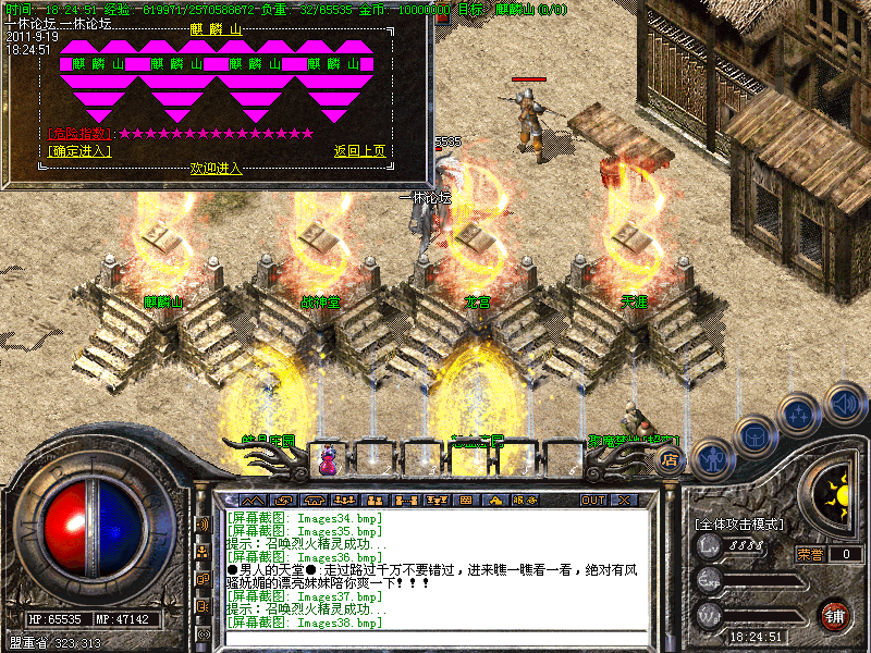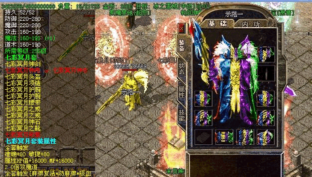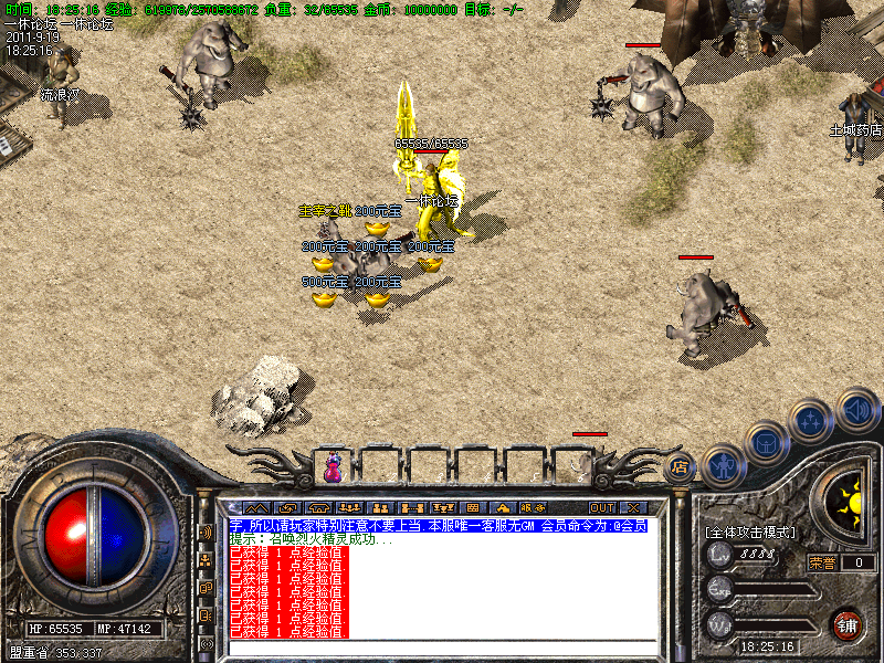 2:有了一定的好装备后,便可从土城左边的传送进入高级地图━→屠魔战场→雪域圣地→众神古墓→黄金战场→获得更高级装备,小怪也有几率暴终极,推荐黄金战场地图