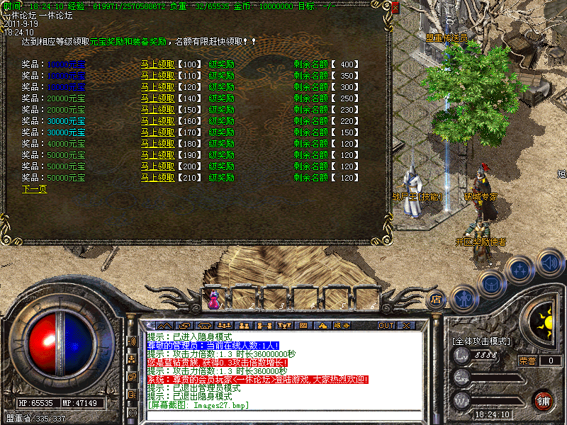 【攻沙奖励】:开区第3天攻沙 奖励300W元宝 老区攻沙奖励100W