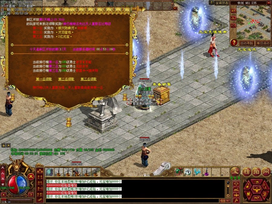 新区开放两小时后举行超级夺宝,超级宝必出(10亿元宝)!新区开放第2天集体拿沙,沙城奖励(10亿元宝+终极套)!