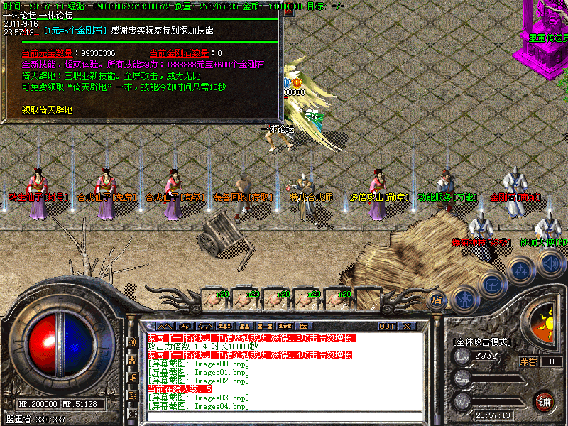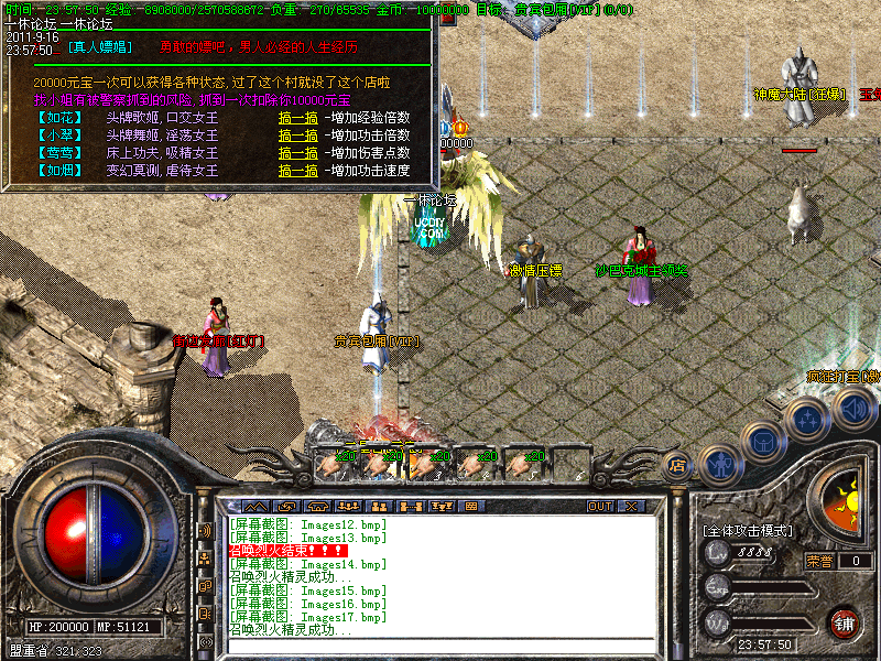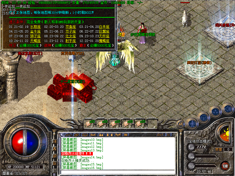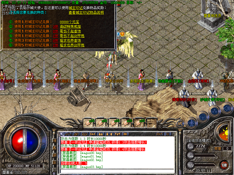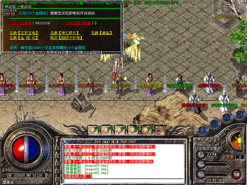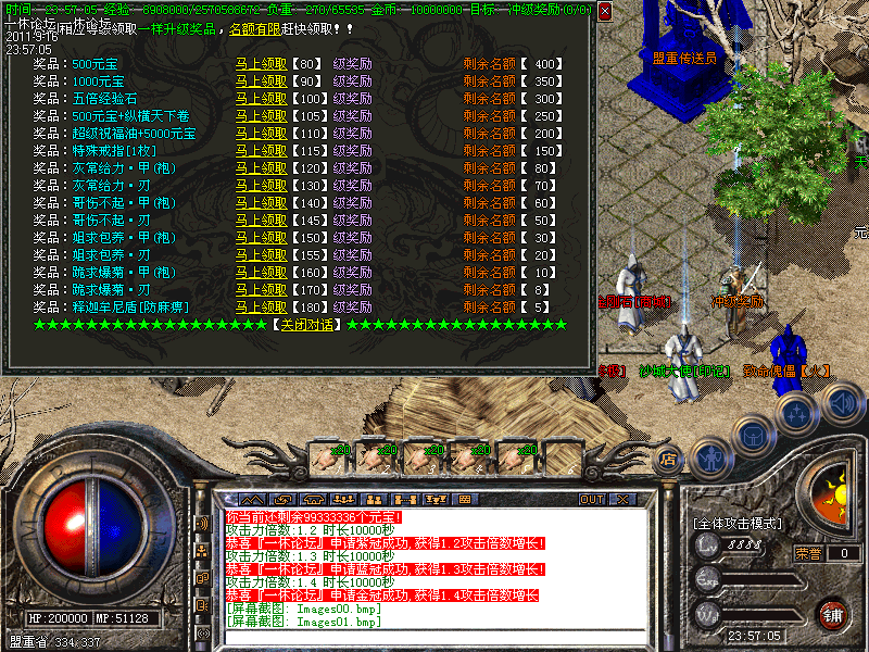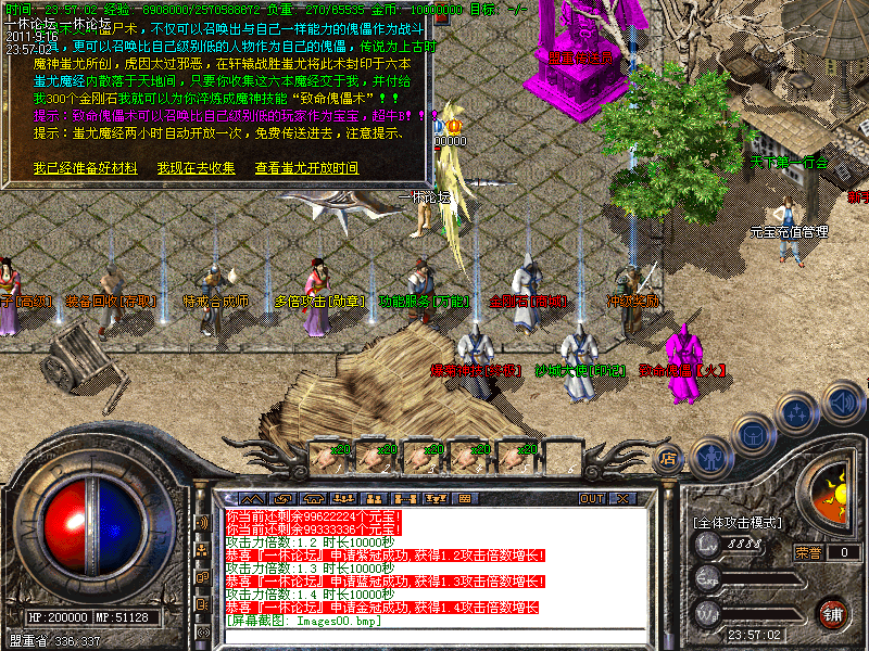 模拟攻城:全服100以上玩家才可以进入,下午15,晚上19点各一场,再现千人攻城场面,杀死守卫及城主,获得不同数量元宝,即杀即得