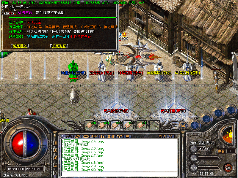 高级装备:传奇庄园、纵横庄园、神魔禁殿、群魔乱舞,爆率超高,纵横天下、神之纵横,高级特戒狂爆