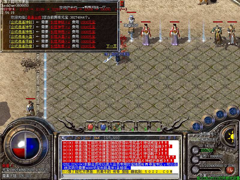 神话系列:在新地图地图爆,,GM地图,七彩花园,会员地图每2小时会刷2个携带毁灭套的人型怪物,运气好永恒装备就到手(在土成NPC可以合成)。 [暴率好爆] GM地图狂 GM终级BOSS好爆