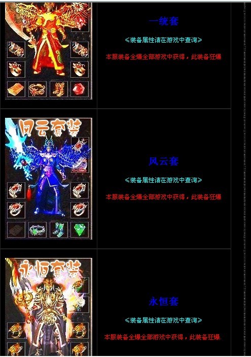 永恒系列:在新地图地图爆,,GM地图,七彩花园,,会员地图每2小时会刷2个携带毁灭套的人型怪物,运气好永恒装备就到手(在土成NPC可以合成)。 [暴率好爆] GM地图狂爆冰龙系列 GM终级BOSS好爆