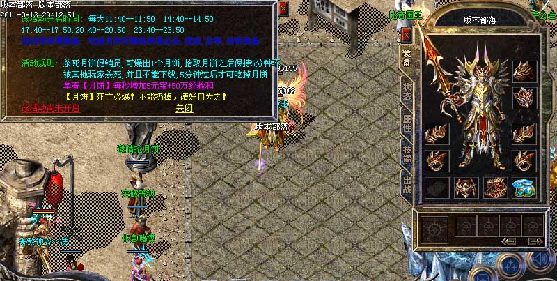 全服活动⑤:每天举行四场激情抢月饼活动。吃掉月饼可获得超级装备