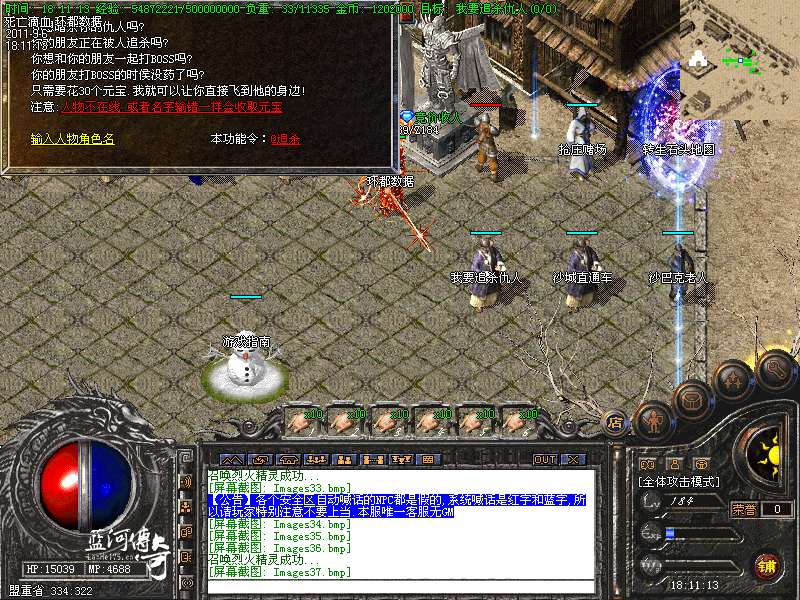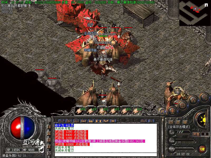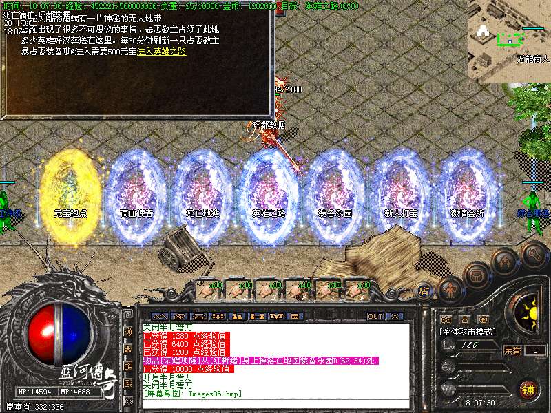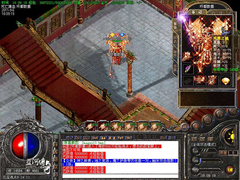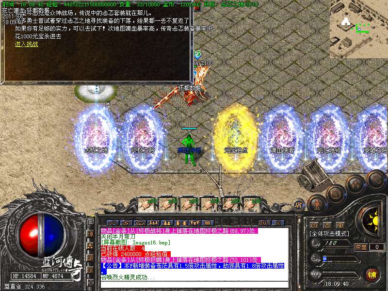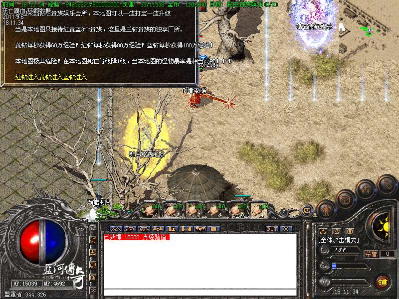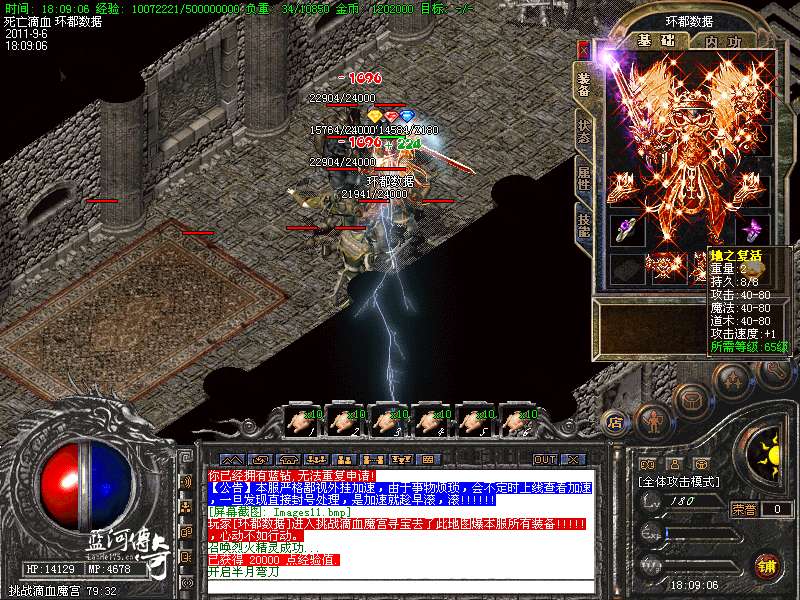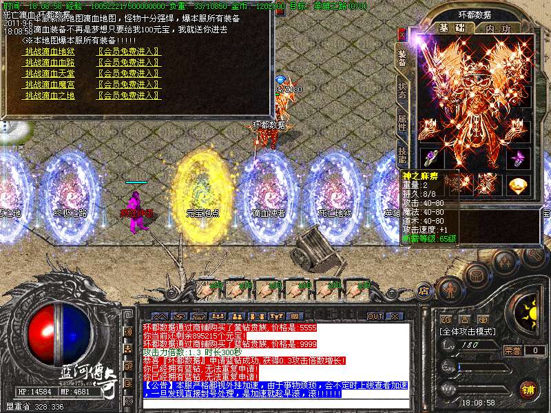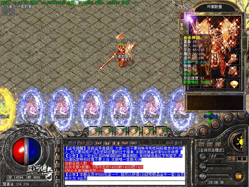 必杀套:6件死亡滴血首饰触发 防 + 200 必杀衣服+武器 1.5 倍攻击 HP+4000 MP+4000 防+400