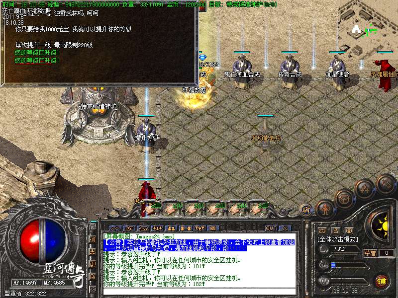 【激情PK 】本服特别添加激情PK堂,死亡人物掉一级。是PK比武的好去处。