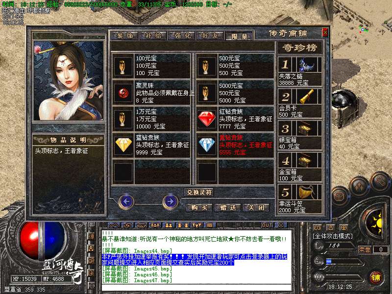 【新增宝箱】服务器新增加金宝箱,银宝箱。可以开出主宰,滴血,终极装备。箱子可以打怪爆出,商铺购买,