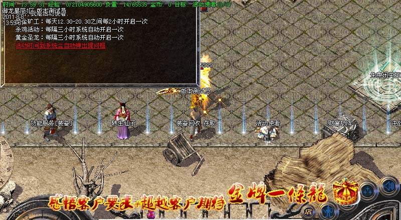 ①.【黄金矿工】:每天12.30-20.30之间每2小时开启一次,元宝经验装备,大放送