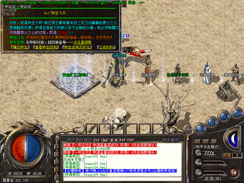 【更新】更新转生系统,1-15转,转生后每转都可以获得相应属性点,每转可获得强悍技能.详情请看转生皇帝!