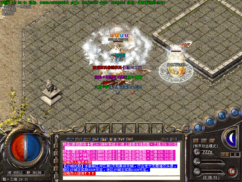 【御林军天子】每天下午5点,各城市安全区刷1只御林军天子,杀死后一定机率爆[终极装备]