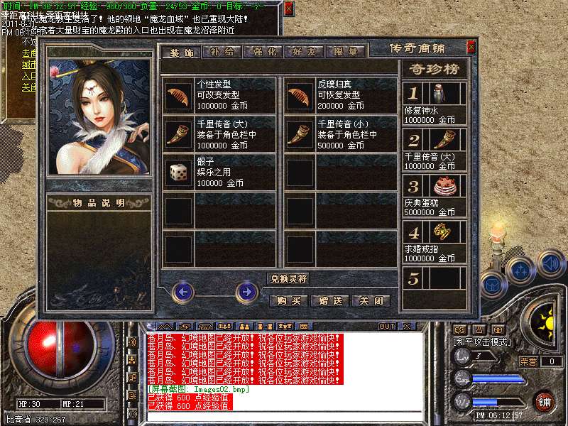 ·地图分期:开区当天开放比奇、毒蛇山谷、盟重、封魔谷、白日门。开区第二天开放苍月岛、幻境。开区第七天开放魔龙城。