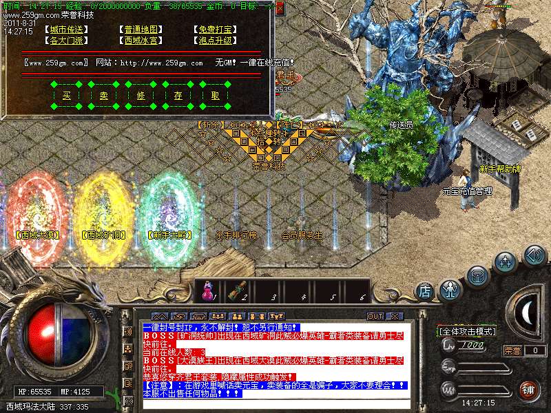 【特别地图】私人领地,本服一大特色,刷新本服所有超级BOSS,想独自享受打怪乐趣的玩家有福气了,进入需要一把--领地之钥,可以打怪爆出,也可以商铺直接购买!