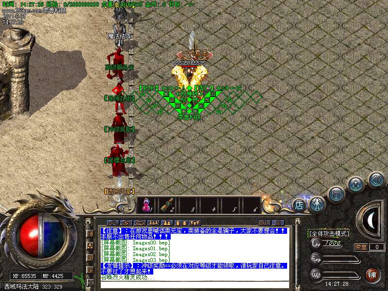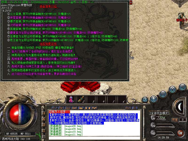 【新手介绍】:新手练级:新人战场出来后直接到新人泡点轻松到80级. 新手打宝:魔龙地图.轻松获得武装自己的装备.还可以暴到宝箱卖元宝.