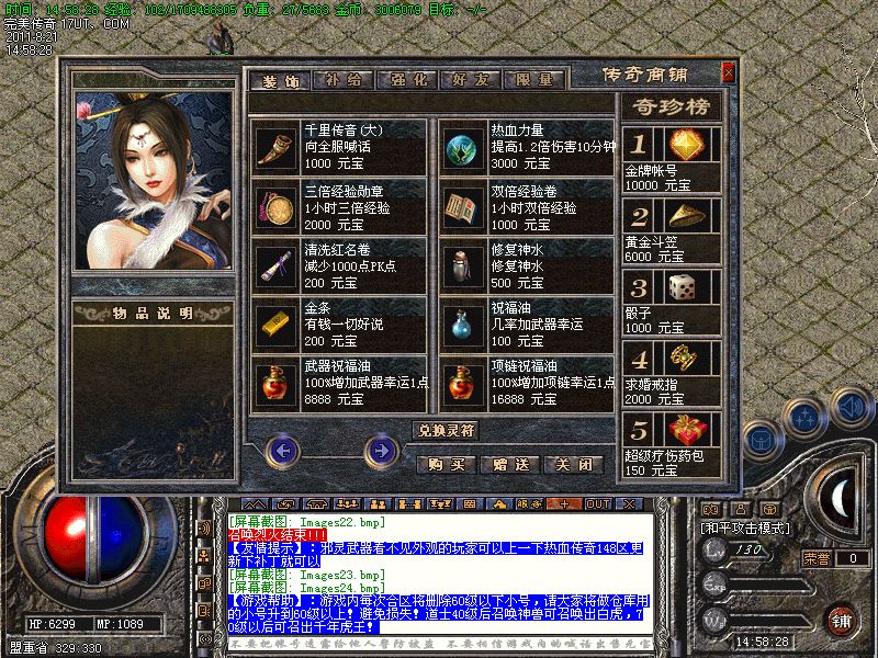 完美网络2011巨献—1.85邪灵龙帝皓月元素轻变版,版本采用传奇版本中HERO游戏引擎,打破传统死板玩法,升级快,爆率高,全新游戏模式独特的游戏方式,独创不可多得的特色游戏功能,增强了版本的可玩性,调整了怪物爆率,加强了物品极品爆率,让玩家无论是在打怪练级,PK寻宝都能得到一个全新的体验,加入了装备元素、三大技能系统等,让玩家乐此不彼,极品的爆率更是让你目不暇接,并且加入全新的游戏功能,让玩家乐不思蜀,是您长期开区的不二选择。联系QQ:31303995