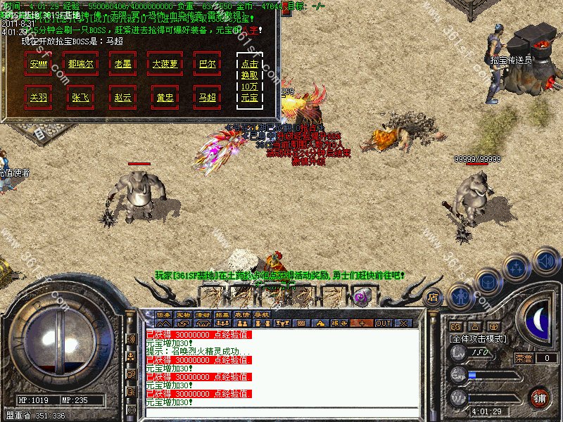 [222]盟重土药抢宝点里可爆率传说中的装备和[心][想][事][成][财][源][广][进]八个字,集齐这八个字后可换取100000元宝!