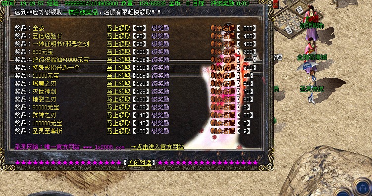 【4】:本服开区第二天集体抢沙,第一届沙城主奖励元宝:20万,希望大家踊跃参加。