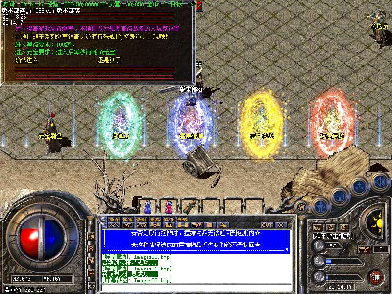 【装备回收】玩家打出来的各种低级装备都可回收.可以在土兑换NPC那里换取经验和元宝.还会召唤出超强BOSS狂爆元宝装备!.