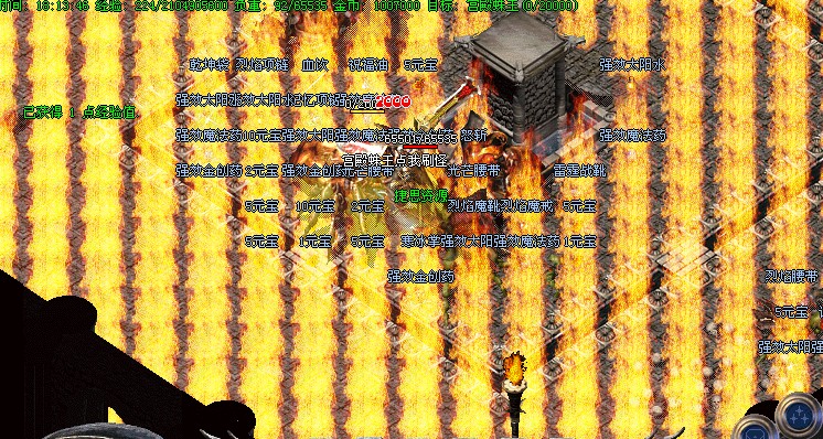 ★ 新手上线建议:魔龙 所爆物品:圣战雷霆、战神.BOSS:魔龙教主、暗之魔龙教主 宫殿教主.所爆物品:开天级武器
