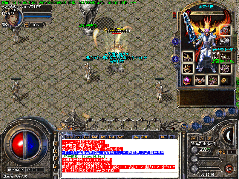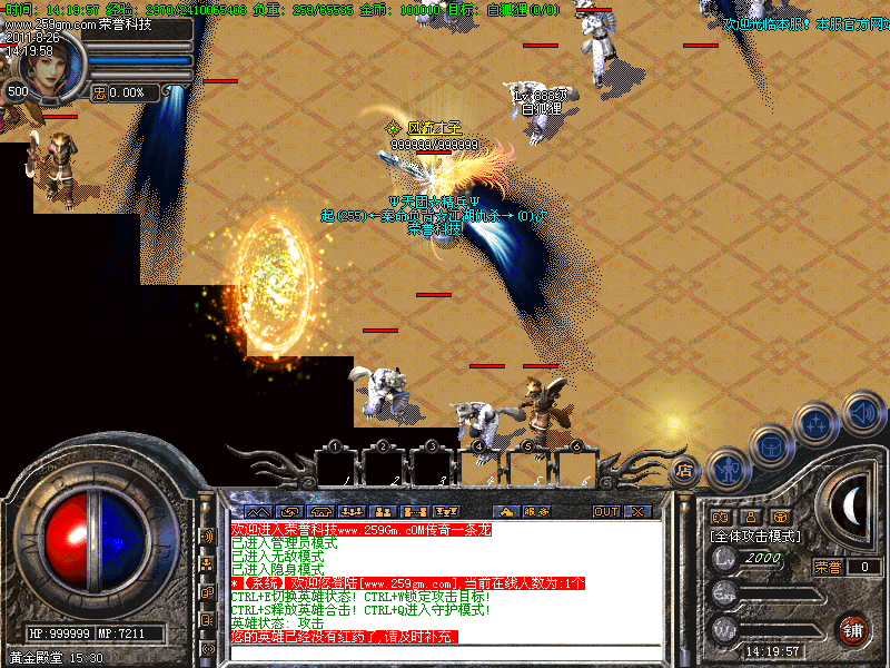 14.开区当天20点沙巴克举行(怪物攻城),凶悍的怪物进攻玛法,人与魔之间的恩怨再次点燃