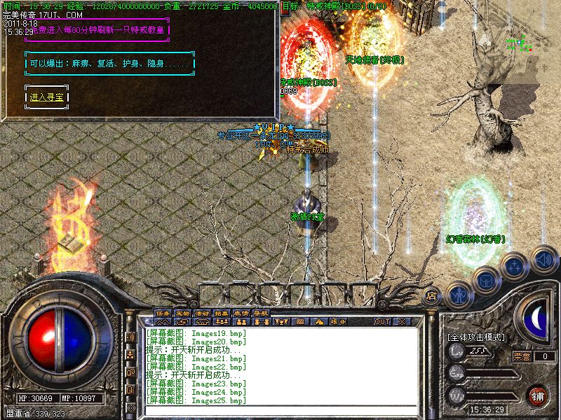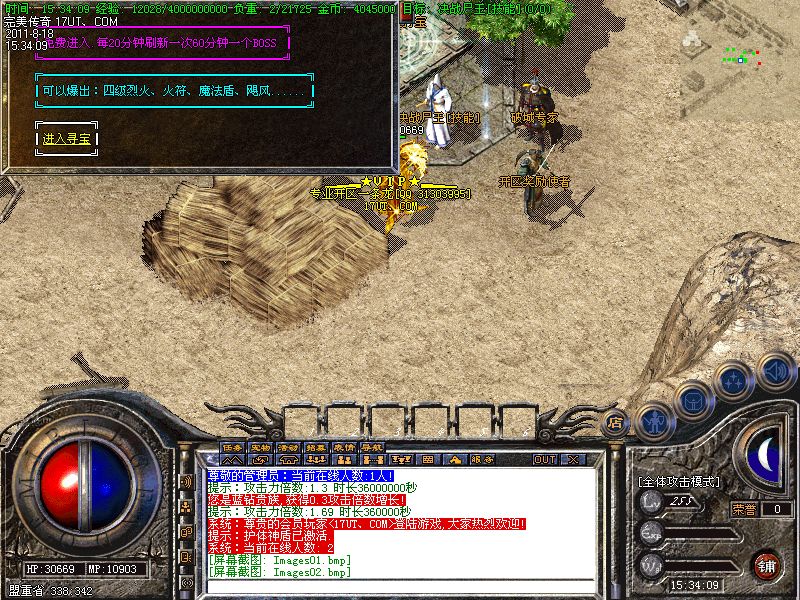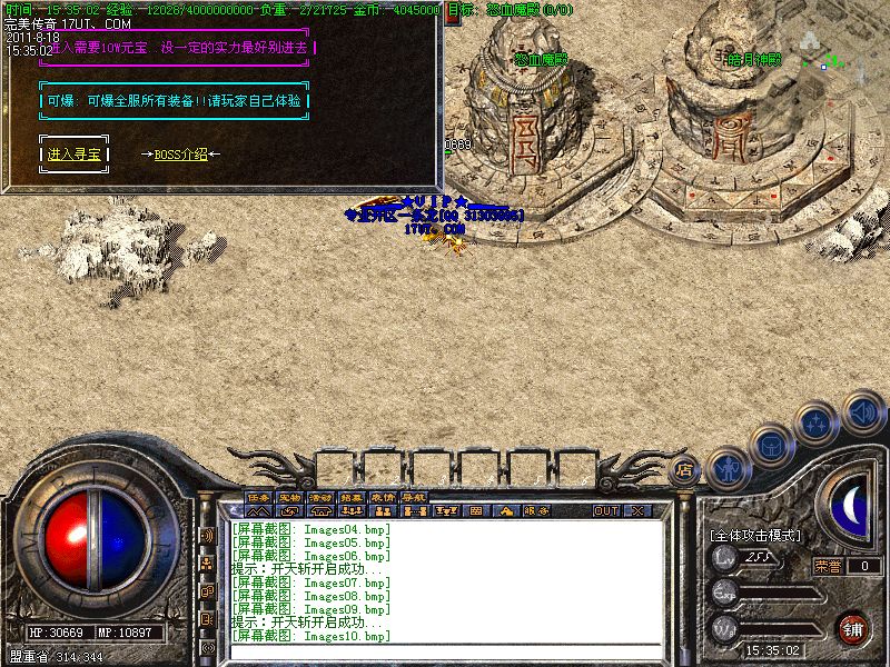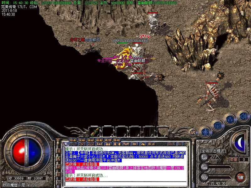 【决战尸王】每20分钟刷新一次,可以爆出四级烈火,灵魂,四级盾,飓风,流星火雨..等等技能书!!
