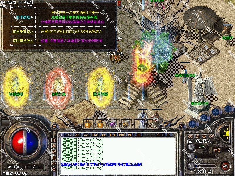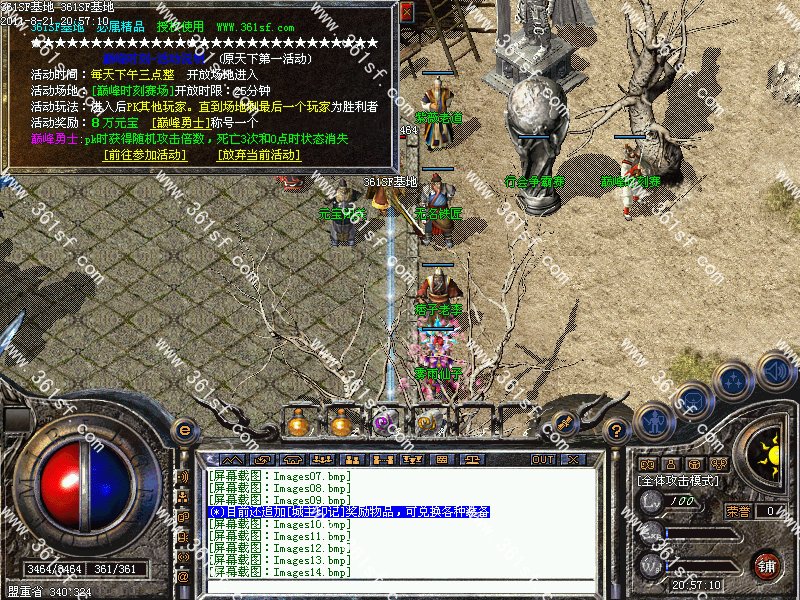 (*)每晚攻沙后,22:30--23:30,在[土武器店门口]附近每隔5分钟发放10000元宝、一千万经验卷