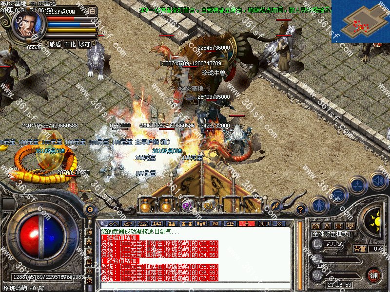 【攻沙奖励】: 开区后第2天拿沙,新区奖励元宝288万,老区激情拿沙奖励100万