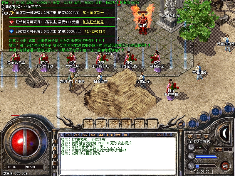 新区开区第二天集体攻城,首届沙巴克城主奖励40万元宝,历届城主奖励10万元宝!攻沙完毕后按次序跨服合区!