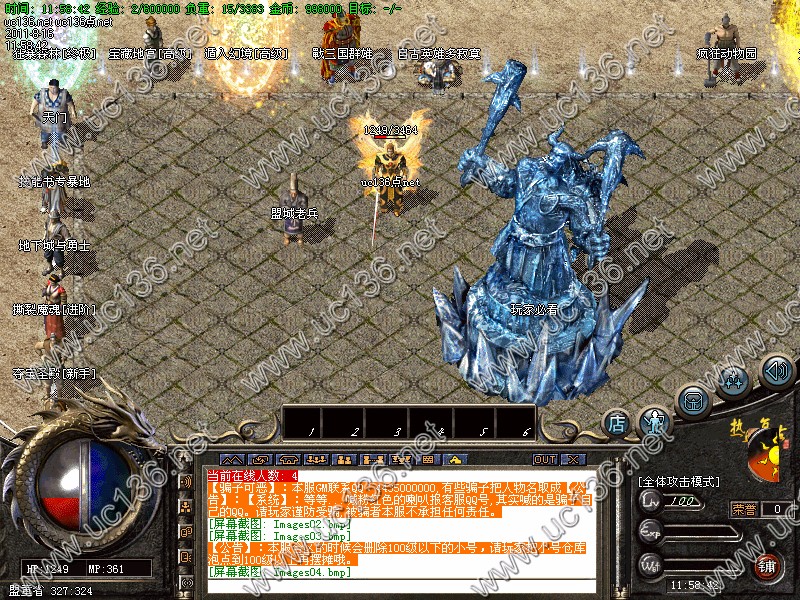 [普通玩家]:新手先去新人泡点里泡到130级,然后去天王起点地图打新手装备,那里是回收元宝的天堂哦^_^更多游戏攻略请游戏中体会!!
