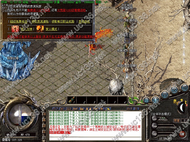 【公告】:贵宾仆人新增:变人为神,穿人模式功能,如果你发现某人一直都打不死,别以为是GM哦^_^快来试试这功能把