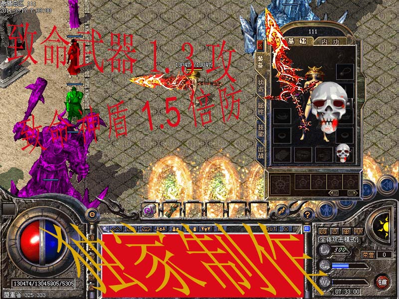 【温馨提示】为了庆祝新区活动,所以怪物爆率提升2倍,元宝充值冲多少送多少,