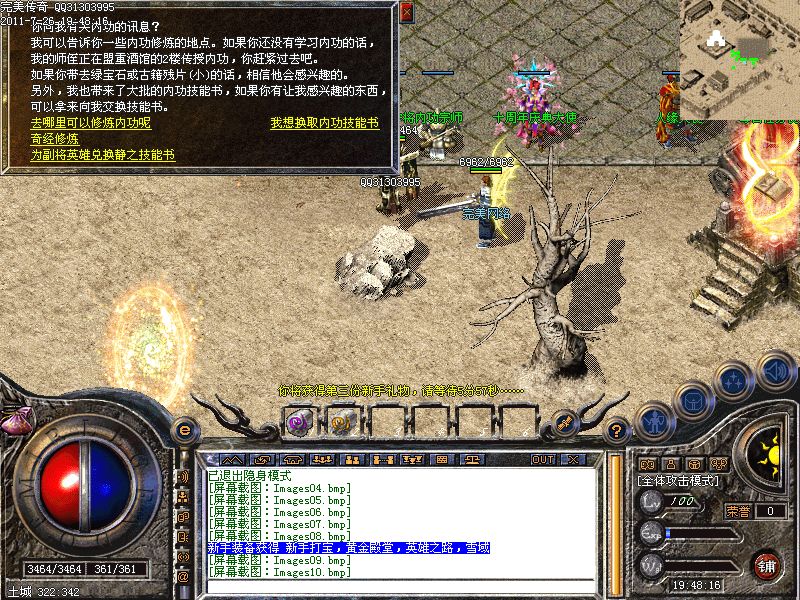 3.更新唯我独尊技能(人物和英雄都有,内功达到200级会自动领悟此技能,拥有三级“唯我独尊”技能的玩家,施放该技能时,会让周围3格范围内的敌对目标处于“减防”状态——敌对目标的防御和魔防减到0,并且效果持续10秒。在这10秒内,敌对目标角色的颜色也将由正常色变为灰白色。.