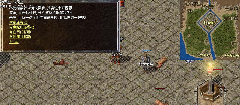 3、新人出生点由比奇大城调整至新人村和银杏村。