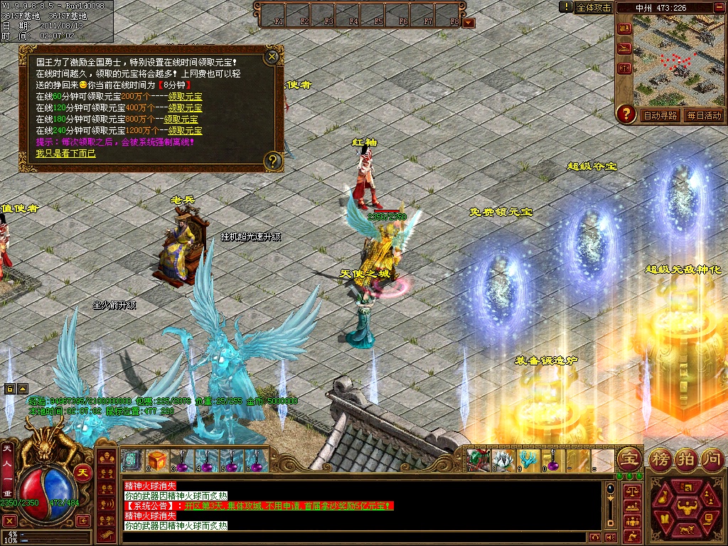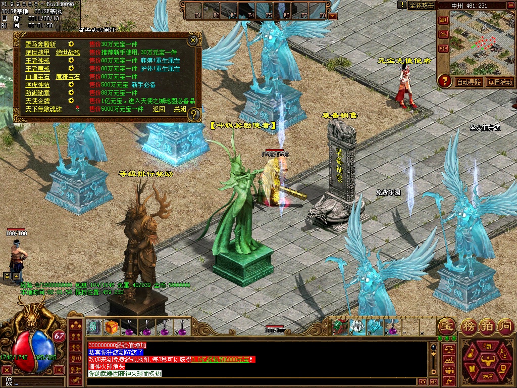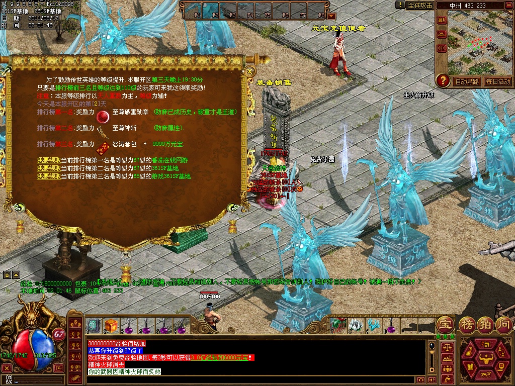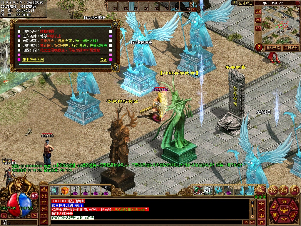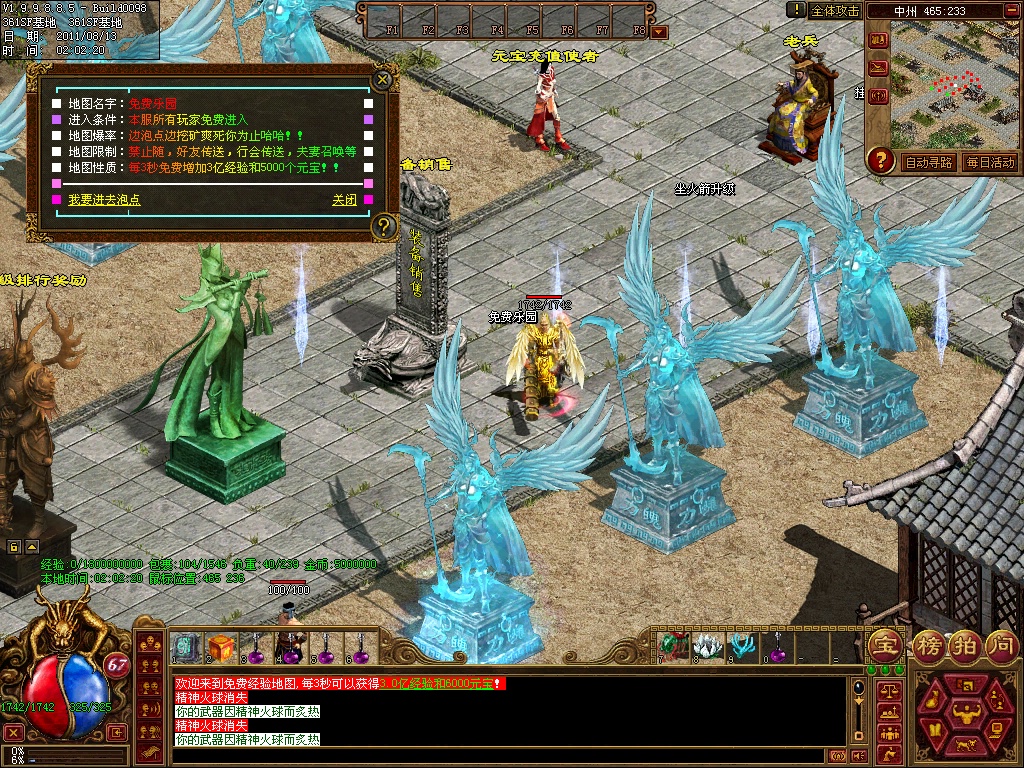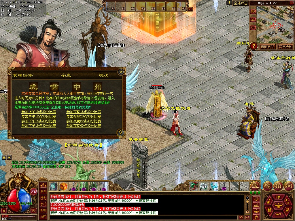 12、练级地图-本服(免费、元宝、离线)泡点地图 封顶147级。本服只要花了时间你就和RMB玩家一样的牛B,这绝对不是说说而已,时间=元宝 时间=装备 时间=等级 时间=牛B