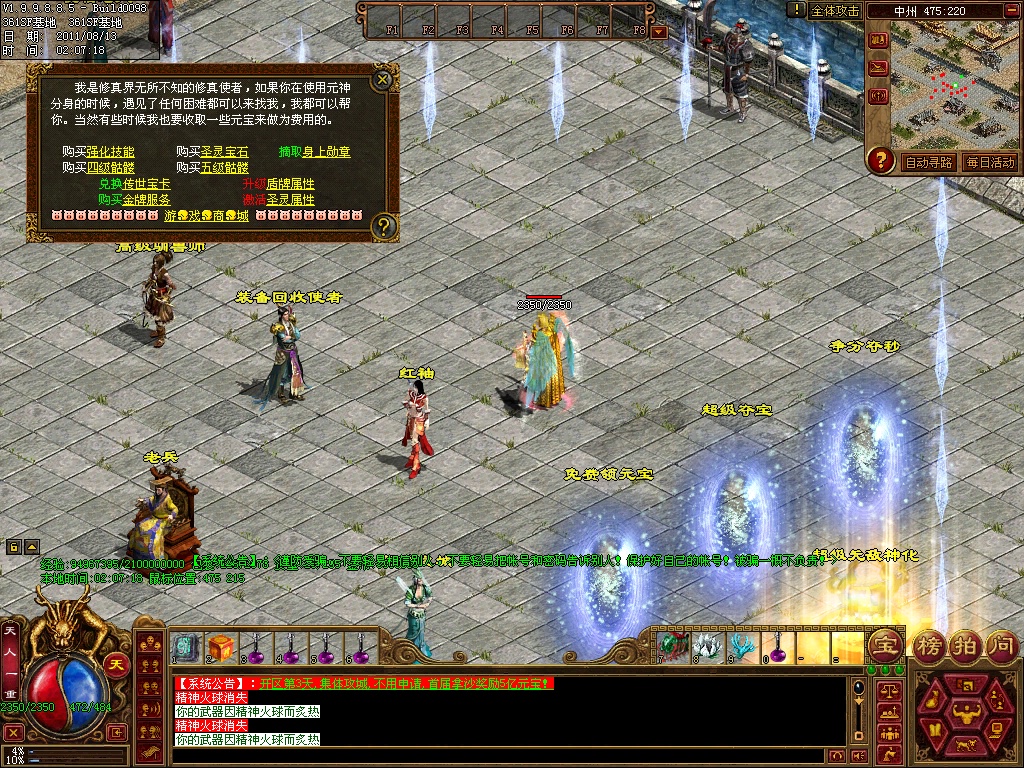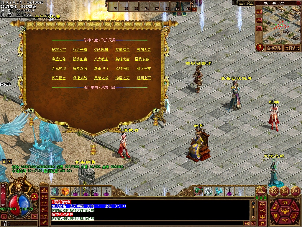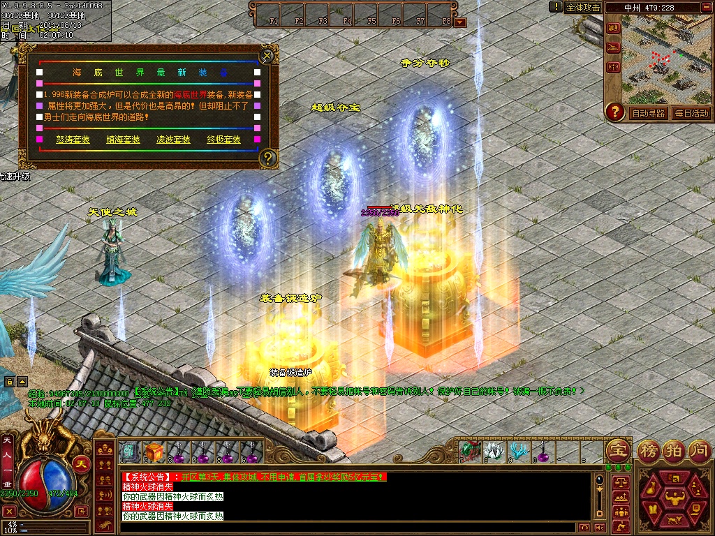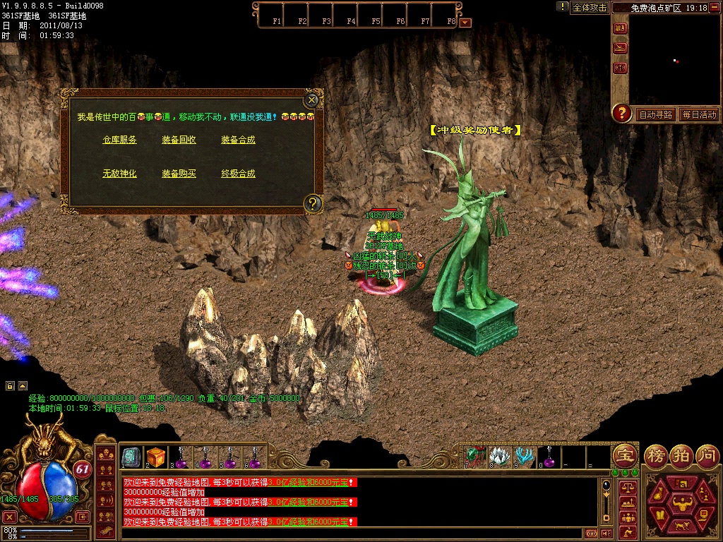 1、版本更新-请务必更新到1.9985.否则新地图,新装备,新怪物,看不到,新加万众风采等地图.各地老兵可体验入内