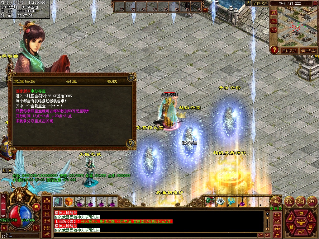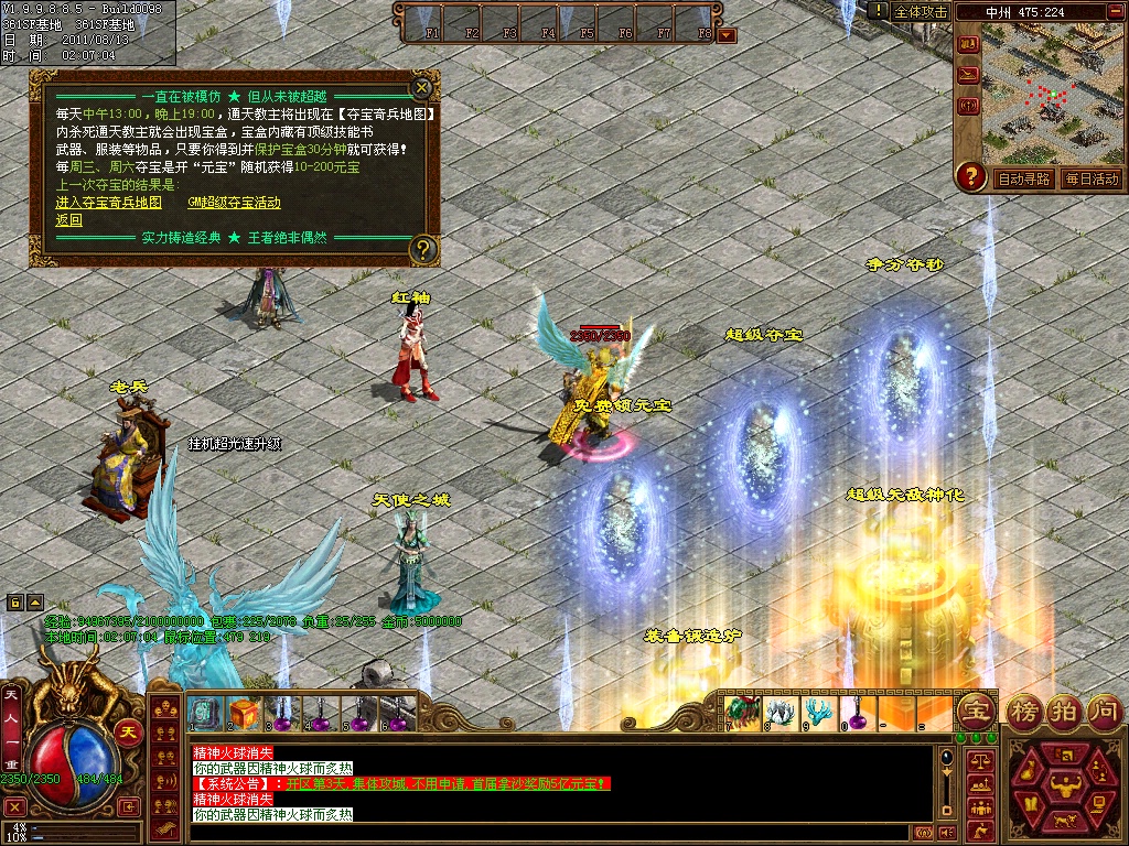6、游戏活动是非常之丰富,已实现:多种夺宝方式-狂暴活动-血海深仇-激情挖矿-真假虎王-争分夺秒-神兵争霸-娱乐抽奖-斩杀成吉思汗-万众风采-全民PK等多种活动!