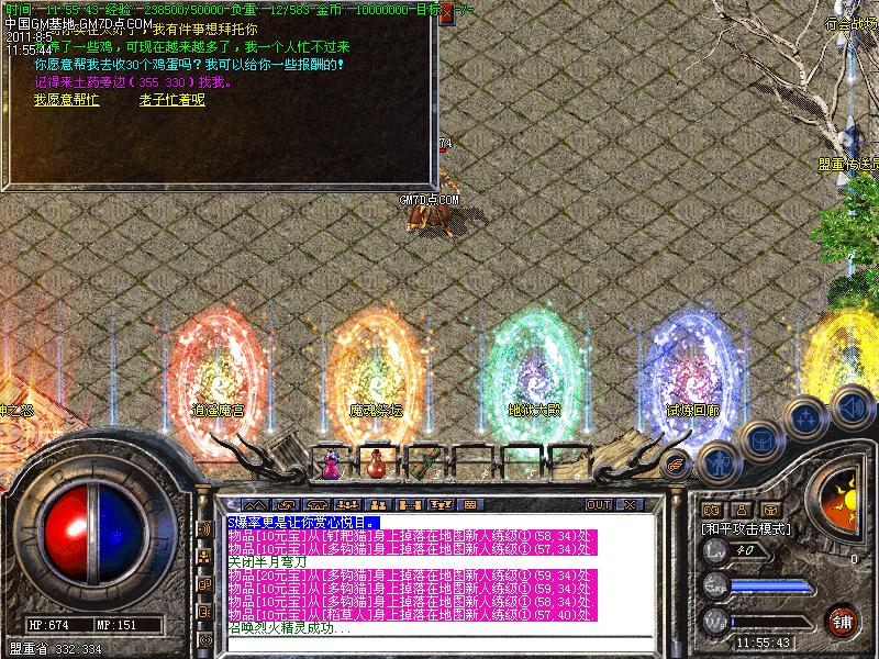 每小时一次怪物攻城,大批BOSS怪随机出现在各大城市,所暴物品非常丰厚。
