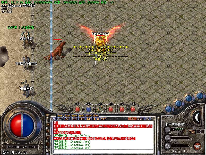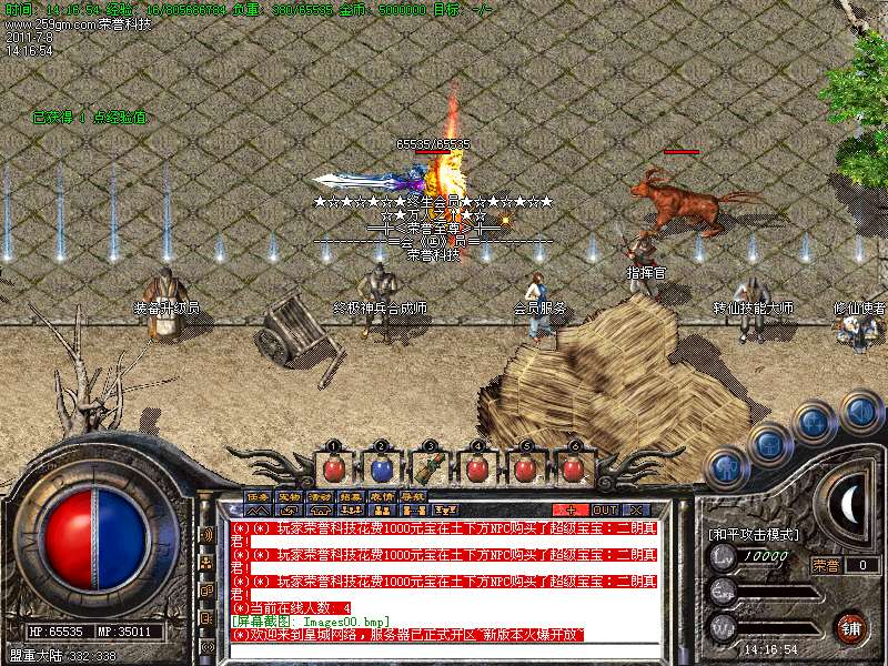 17.本服承诺,所有装备一律自己在游戏中获得,所有元宝购买,一律自己在网站上进行充值,无GM在线卖装备,也无GM在线卖元宝!