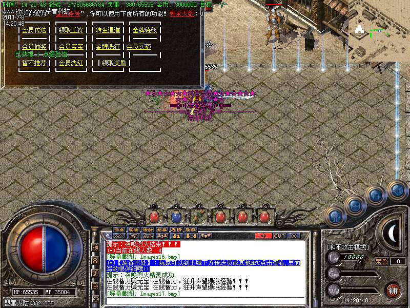 10.月光系列:七大城,会员地图每1小时会刷2个携带天地套的人型怪物,运气好了 什么都可以打的到