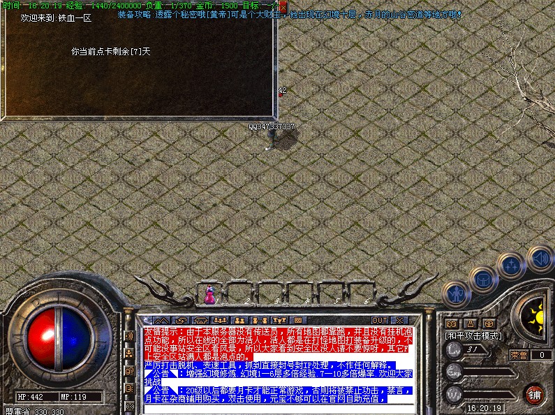20级以后都要月卡才能正常游戏,否则将被禁止功击,禁言,月卡在杂商铺用购买,双击使用,元宝不够可以在官网自助充值,