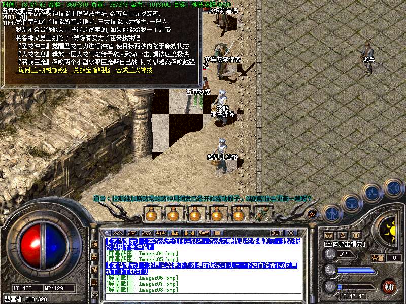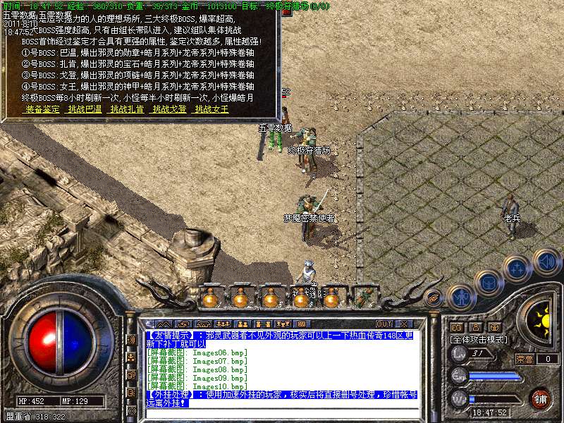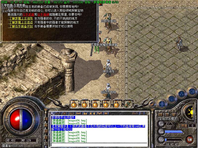 特级地图:神技迷阵、梦魇地图、狩猎BOSS,打特级装备赚取元宝的地图,土右边 NPC进。