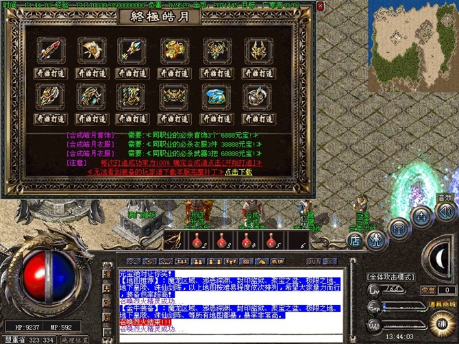 【游戏帮助】:游戏内每次合区将删除60级以下小号,请大家将做仓库用的小号升到60级以上!避免损失!道士40级后召唤神兽可召唤出白虎,70级以后可召出千年虎王!