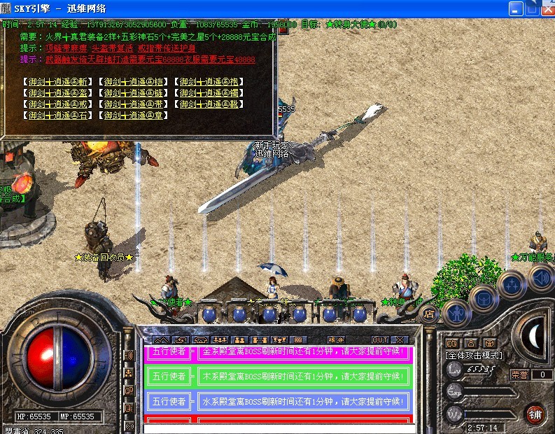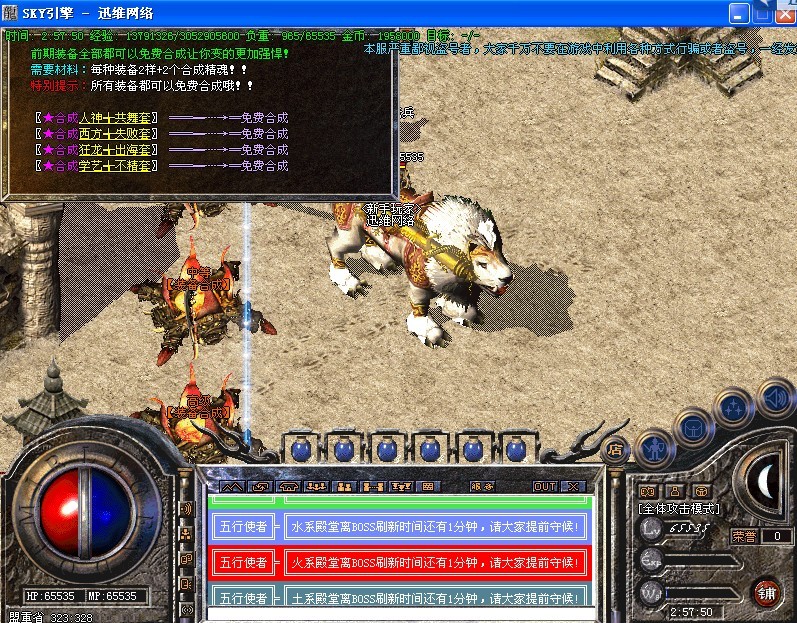 温馨提示:打到多余的装备千万别丢掉,在装备回收处可换取经验或元宝!!在装备合成处可合成高级装备!!