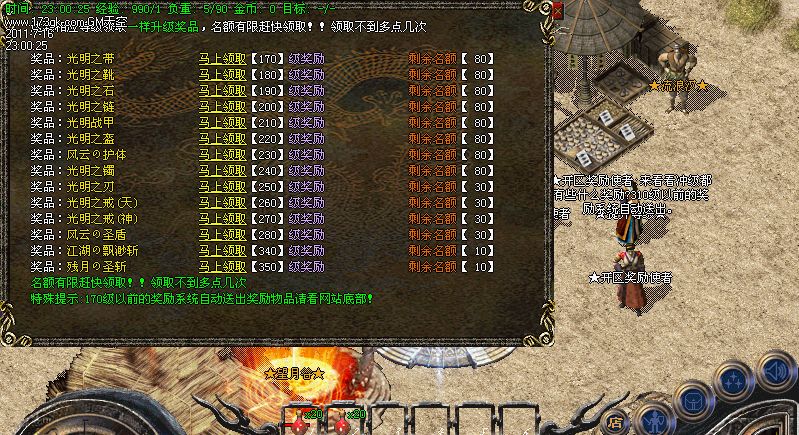 8.攻沙指南:开区3天后全区行会统一攻沙,攻沙奖励:500W元宝+江湖武器